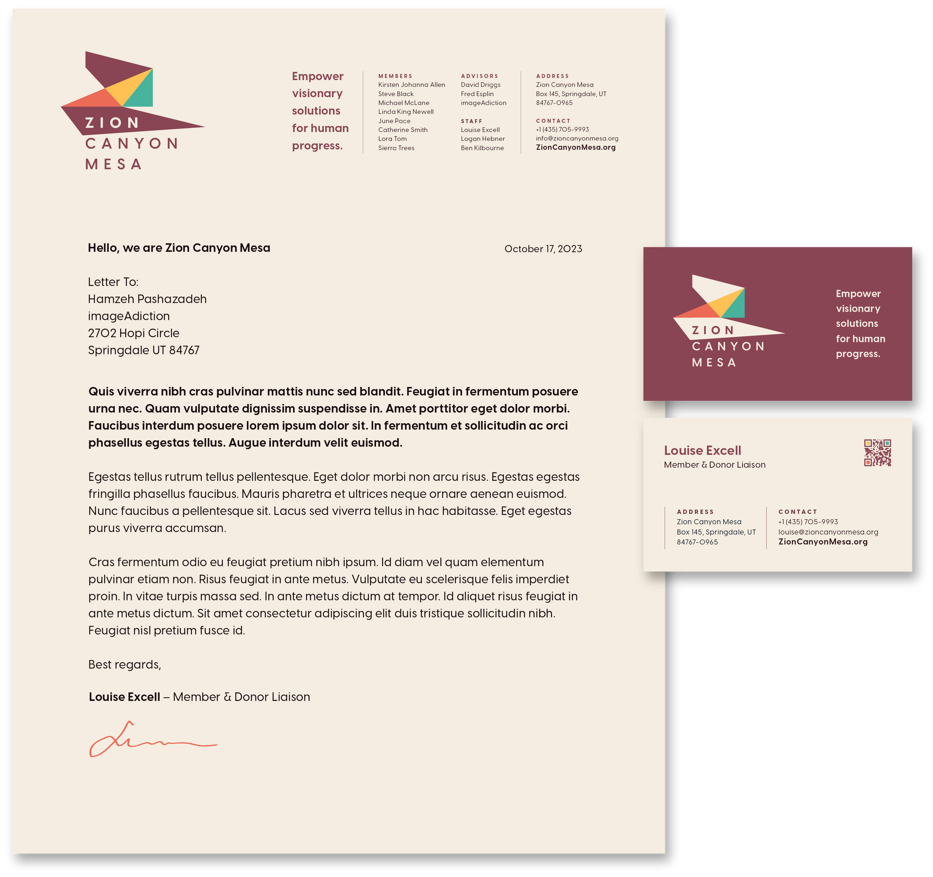 - Supports engaged writers, artists, and other visionaries with residencies at the Mesa, surrounded by Zion National Park
